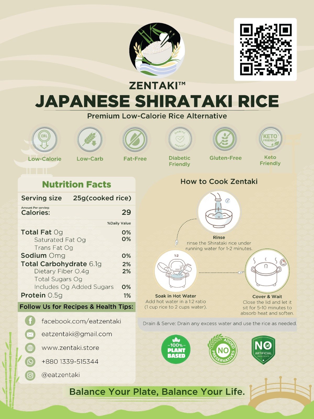 Zentaki is a premium dry Shirataki rice made from the konjac root, a traditional Japanese superfood. It’s the perfect low-carb, low-calorie alternative to white rice without compromising on taste or texture.